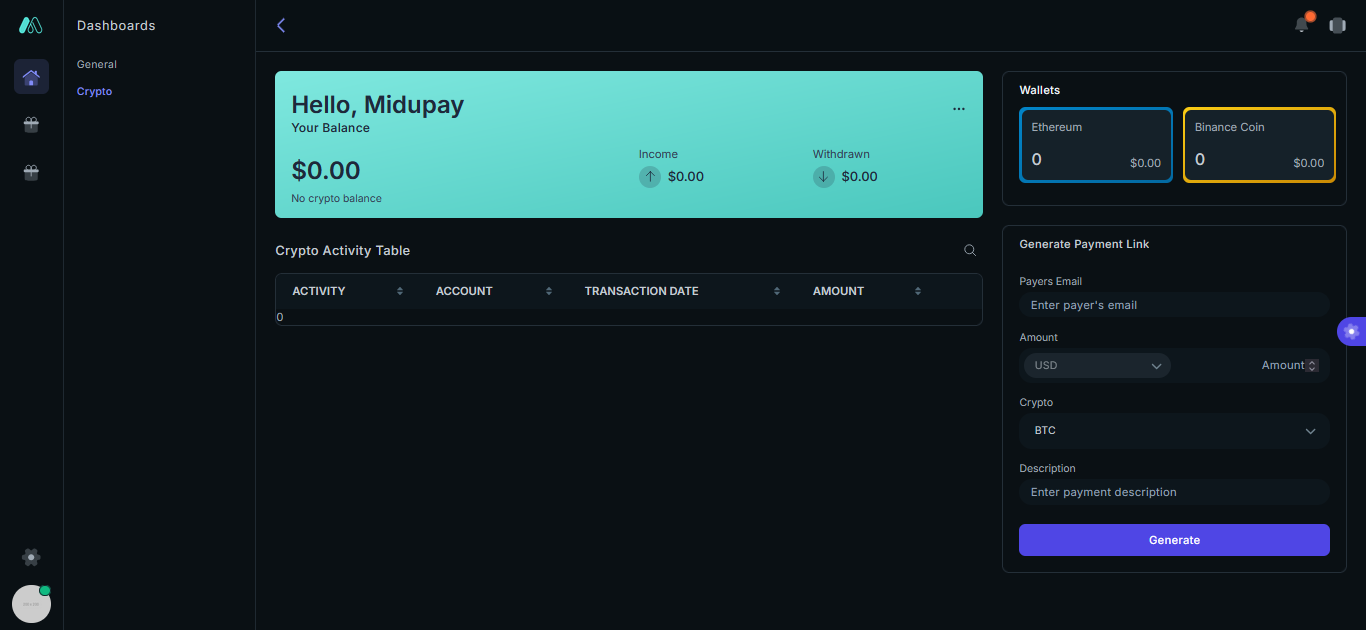 Whether you’re accepting crypto payments or selling online, Midupay simplifies it all.